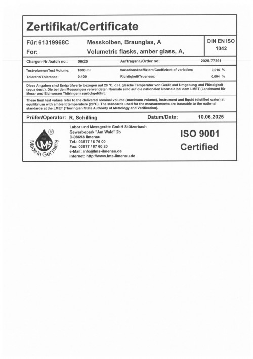 갈색 메스플라스크 1000ml certi 0625
