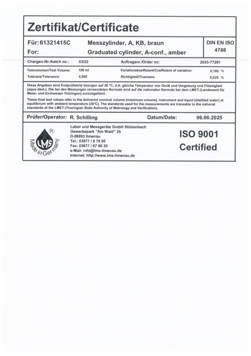 메스 실린더 100ml certi 0325