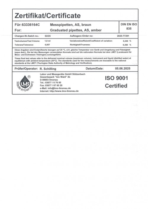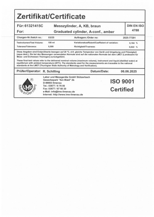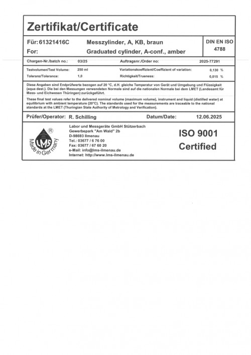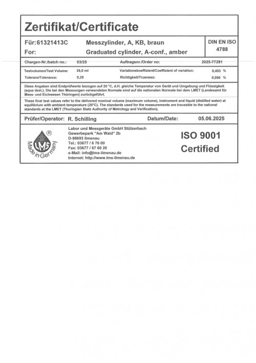메스 실린더 25ml certi 0325