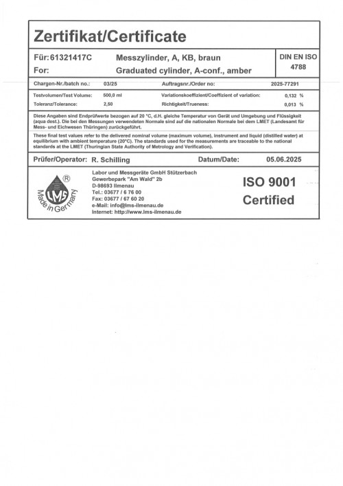 메스 실린더 500ml certi 0325